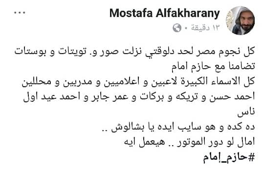 وقام جمهور نادى الزمالك بنشر عبارات حب و دعم لكابتن حازم إمام على صفحاتهم الشخصية على مواقع التواص الاجتماعى سواء فيس بوك او انيستجرام او تويتر .